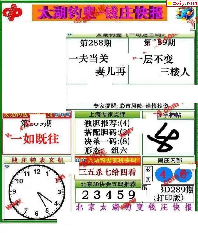 钱庄快报2025289期3d图谜
