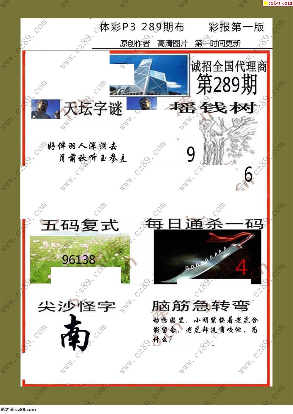 香岛彩报289期体彩p3图谜