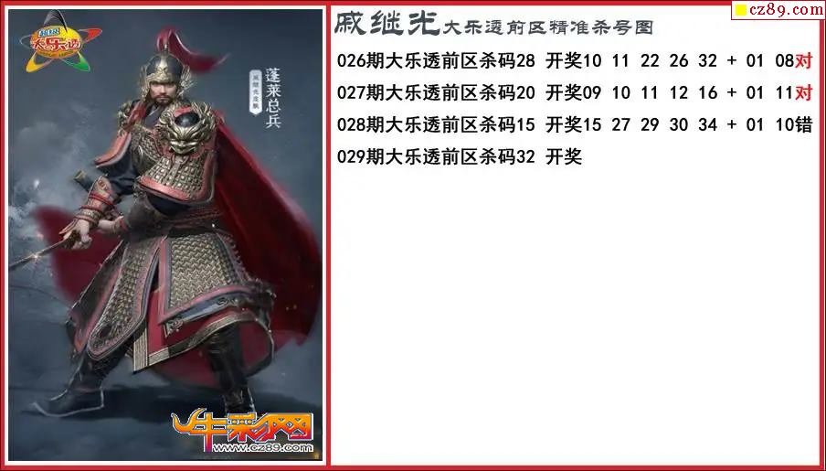 大乐透029期戚继光前区精准杀号图